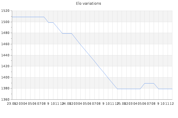 Elo no rounded:1378.6 Rd ( Small rd indicates a reliable elo ) : 225 Elo max :0 Elo max this year :0 Moves played :12 Country:Czech Republic