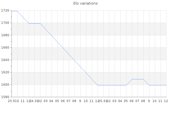 Elo no rounded:1601.9 Rd ( Small rd indicates a reliable elo ) : 289 Elo max :0 Elo max this year :0 Moves played :5 Country:Brazil