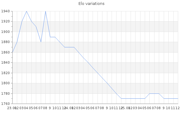 Elo no rounded:1768.3 Rd ( Small rd indicates a reliable elo ) : 90 Fast Elo :1669 Fast Rd : 177 Elo max :2170 Elo max this year :2170 Moves played :48010 Country:United States of America