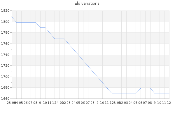 Elo no rounded:1671.2 Rd ( Small rd indicates a reliable elo ) : 344 Elo max :0 Elo max this year :0 Moves played :7 Country:Malta