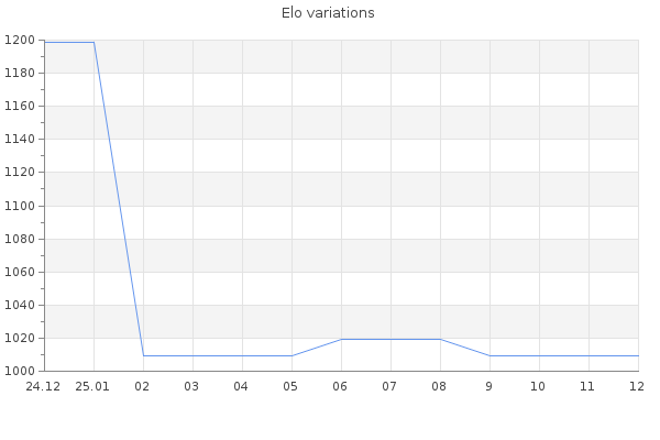 Elo no rounded:1013.3 Rd ( Small rd indicates a reliable elo ) : 213 Elo max :0 Elo max this year :0 Moves played :114 Country:Canada