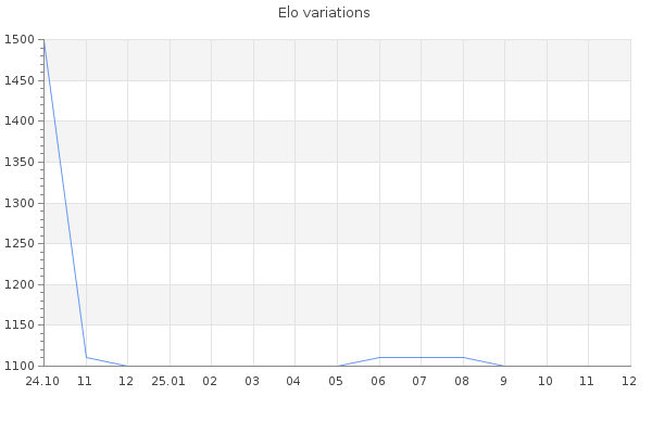 Elo no rounded:1102.7 Rd ( Small rd indicates a reliable elo ) : 139 Elo max :1140 Elo max this year :1140 Moves played :169 Country:Estonia