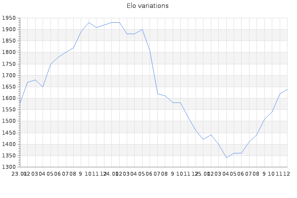 Elo no rounded:1635.8 Rd ( Small rd indicates a reliable elo ) : 84 Elo max :1980 Elo max this year :1980 Moves played :5334 Country:Brunei