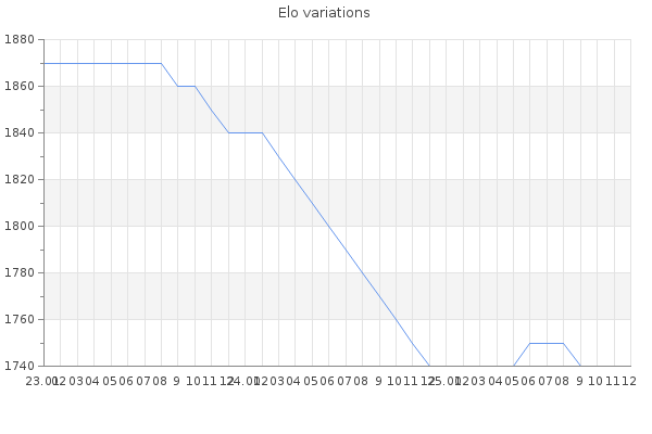 Elo no rounded:1740.2 Rd ( Small rd indicates a reliable elo ) : 104 Fast Elo :1749 Fast Rd : 191 Elo max :2290 Elo max this year :2290 Moves played :6537 Country:other Country
