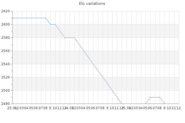 Elo no rounded:2478.2 Rd ( Small rd indicates a reliable elo ) : 96 Elo max :2870 Elo max this year :2870 Moves played :5874 Country:Israel