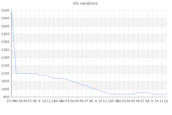 Elo no rounded:973.7 Rd ( Small rd indicates a reliable elo ) : 239 Elo max :0 Elo max this year :0 Moves played :10 Country:France