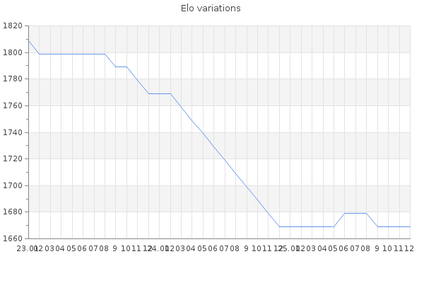 Elo no rounded:1672.7 Rd ( Small rd indicates a reliable elo ) : 345 Elo max :0 Elo max this year :0 Moves played :5 Country:other Country