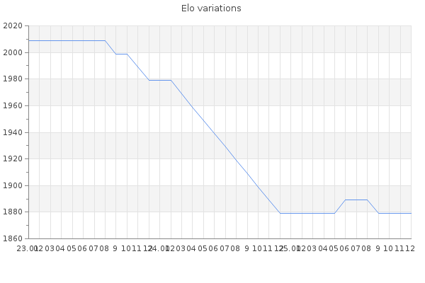 Elo no rounded:1875.7 Rd ( Small rd indicates a reliable elo ) : 320 Elo max :2080 Elo max this year :2080 Moves played :367 Country:Portugal