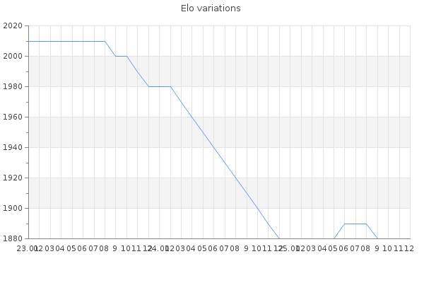 Elo no rounded:1884 Rd ( Small rd indicates a reliable elo ) : 88 Fast Elo :1789 Fast Rd : 167 Elo max :2330 Elo max this year :2330 Moves played :8223 Country:United Kingdom