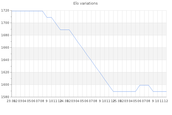 Elo no rounded:1591.8 Rd ( Small rd indicates a reliable elo ) : 275 Elo max :0 Elo max this year :0 Moves played :39 Country:United States of America