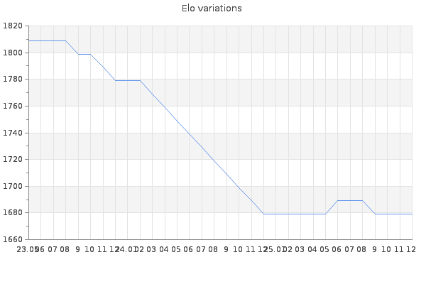 Elo no rounded:1679 Rd ( Small rd indicates a reliable elo ) : 350 Elo max :0 Elo max this year :0 Moves played :1 Country:Norway