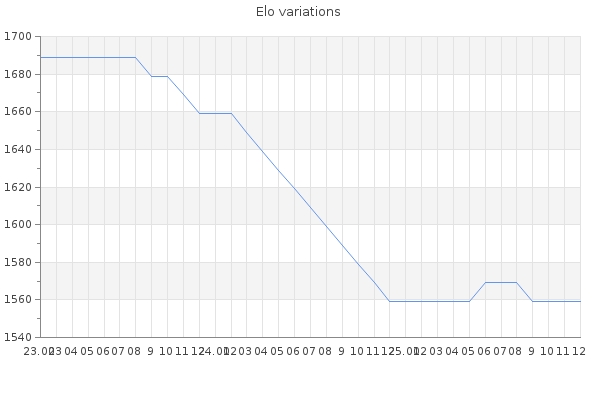Elo no rounded:1563.3 Rd ( Small rd indicates a reliable elo ) : 299 Elo max :0 Elo max this year :0 Moves played :5 Country:Russia