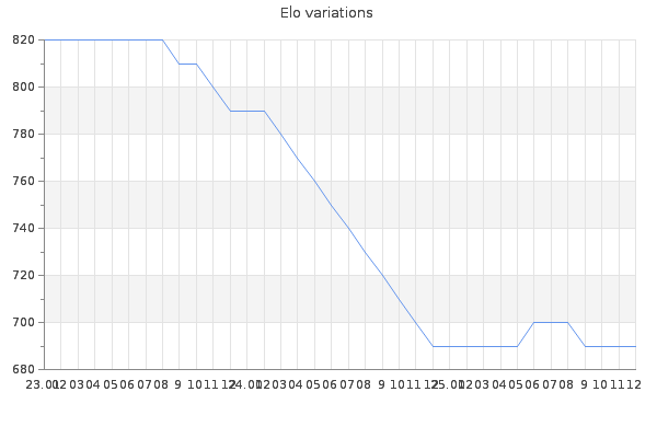Elo no rounded:690 Rd ( Small rd indicates a reliable elo ) : 130 Elo max :1040 Elo max this year :1040 Moves played :75 Country:other Country