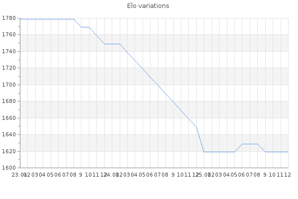 Elo no rounded:1623.8 Rd ( Small rd indicates a reliable elo ) : 374 Elo max :0 Elo max this year :0 Moves played :6 Country:Christmas Island