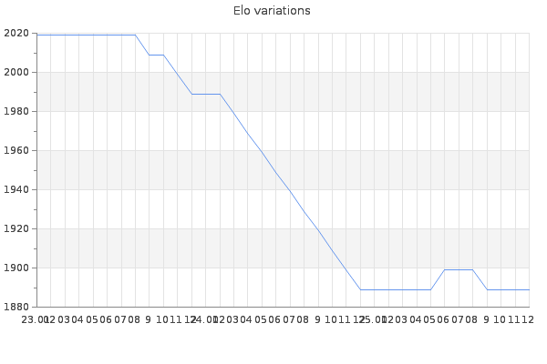 Elo no rounded:1892.2 Rd ( Small rd indicates a reliable elo ) : 158 Elo max :0 Elo max this year :0 Moves played :138 Country:Canada
