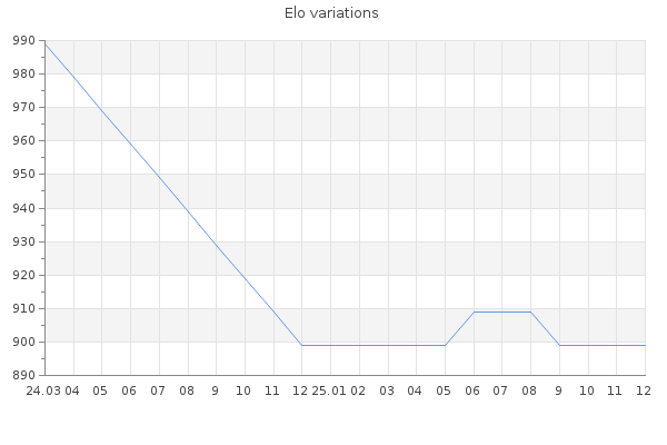 Elo no rounded:899 Rd ( Small rd indicates a reliable elo ) : 350 Elo max :0 Elo max this year :0 Moves played :0 Country:France
