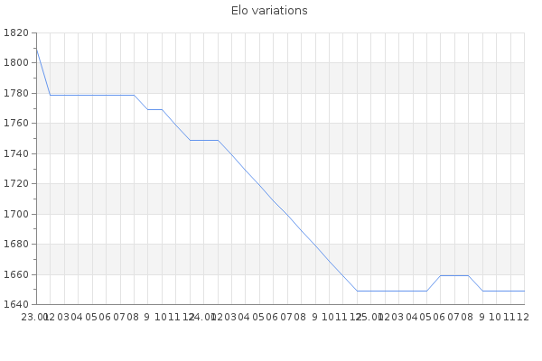 Elo no rounded:1653.4 Rd ( Small rd indicates a reliable elo ) : 327 Elo max :0 Elo max this year :0 Moves played :10 Country:Denmark
