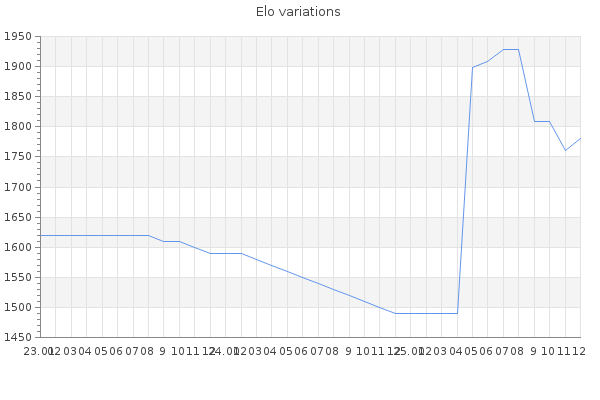 Elo no rounded:1777.4 Rd ( Small rd indicates a reliable elo ) : 138 Elo max :1890 Elo max this year :1890 Moves played :5965 Country:United Kingdom