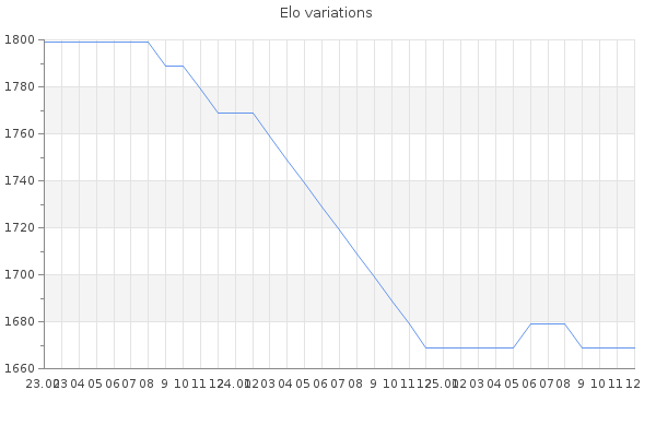 Elo no rounded:1672.9 Rd ( Small rd indicates a reliable elo ) : 344 Elo max :0 Elo max this year :0 Moves played :8 Country:Poland