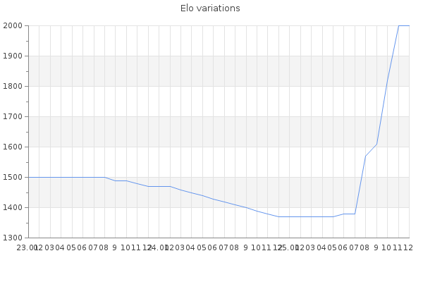 Elo no rounded:1998.3 Rd ( Small rd indicates a reliable elo ) : 151 Elo max :0 Elo max this year :0 Moves played :160 Country:Italy