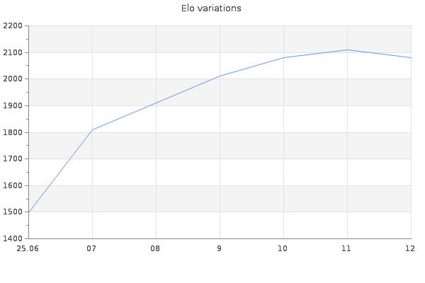 Elo no rounded:2077.4 Rd ( Small rd indicates a reliable elo ) : 99 Elo max :2120 Elo max this year :2120 Moves played :669 Country:Holy See (Vatican City)