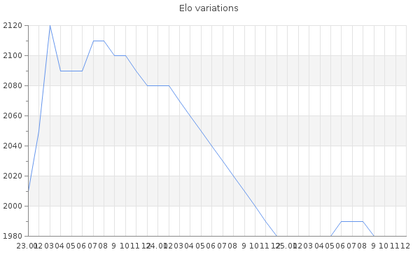 Elo no rounded:1978.5 Rd ( Small rd indicates a reliable elo ) : 109 Elo max :2410 Elo max this year :2410 Moves played :5378 Country:Uruguay