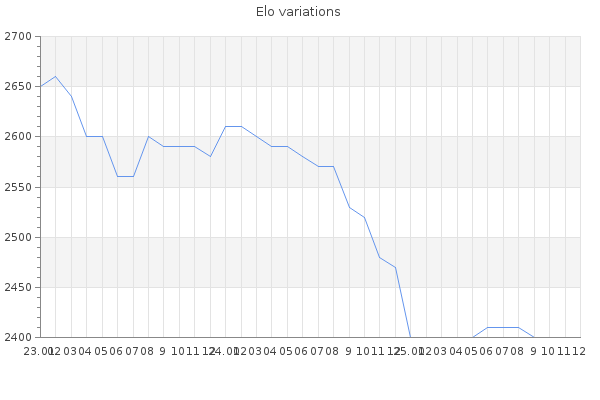Elo no rounded:2404.3 Rd ( Small rd indicates a reliable elo ) : 95 Elo max :2880 Elo max this year :2880 Moves played :12509 Country:Germany