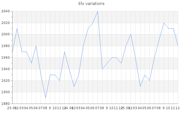 Elo no rounded:1996.8 Rd ( Small rd indicates a reliable elo ) : 89 Fast Elo :1429 Fast Rd : 294 Elo max :2270 Elo max this year :2270 Moves played :43840 Country:Turkey
