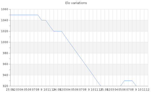 Elo no rounded:919.4 Rd ( Small rd indicates a reliable elo ) : 97 Elo max :1270 Elo max this year :1270 Moves played :397 Country:Argentina