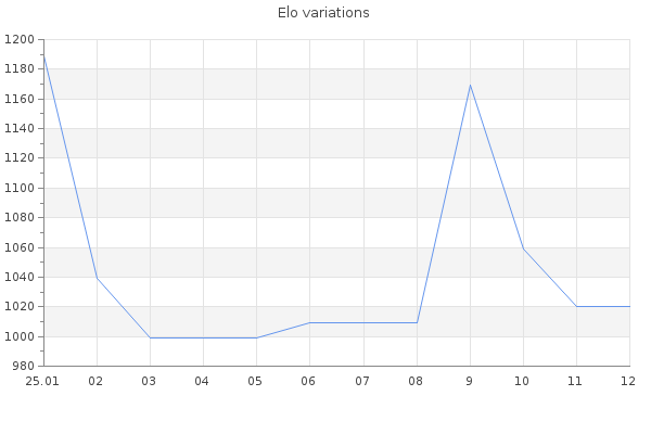 Elo no rounded:1017 Rd ( Small rd indicates a reliable elo ) : 141 Elo max :1050 Elo max this year :1050 Moves played :117 Country:Brazil