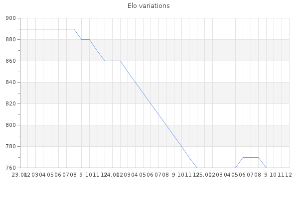 Elo no rounded:760.1 Rd ( Small rd indicates a reliable elo ) : 120 Fast Elo :1210 Fast Rd : 143 Elo max :1100 Elo max this year :1100 Moves played :495 Country:other Country