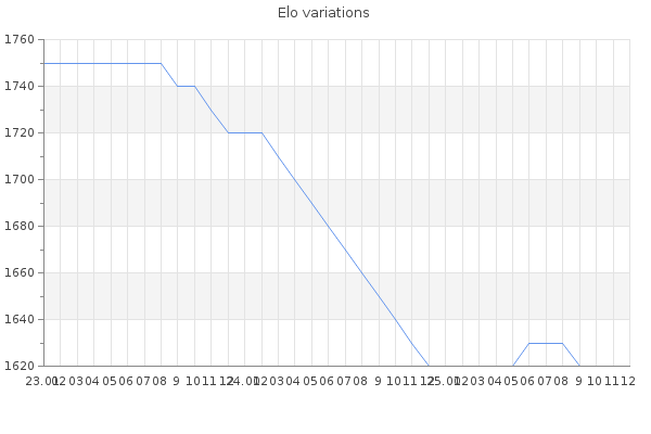 Elo no rounded:1617.4 Rd ( Small rd indicates a reliable elo ) : 80 Elo max :2160 Elo max this year :2160 Moves played :6815 Country:Netherlands