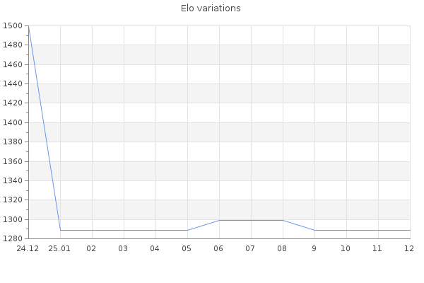 Elo no rounded:1292.6 Rd ( Small rd indicates a reliable elo ) : 208 Elo max :0 Elo max this year :0 Moves played :27 Country:Mexico