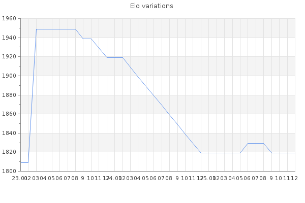 Elo no rounded:1820.8 Rd ( Small rd indicates a reliable elo ) : 269 Elo max :0 Elo max this year :0 Moves played :19 Country:other Country