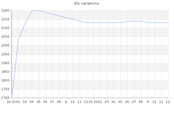 Elo no rounded:2126 Rd ( Small rd indicates a reliable elo ) : 102 Elo max :2210 Elo max this year :2210 Moves played :536 Country:Netherlands
