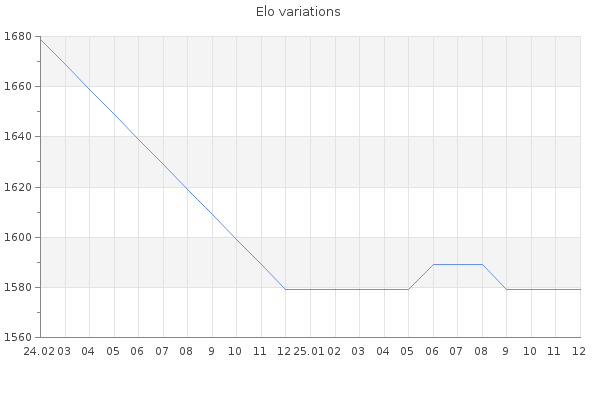 Elo no rounded:1581 Rd ( Small rd indicates a reliable elo ) : 255 Elo max :0 Elo max this year :0 Moves played :5 Country:Ethiopia