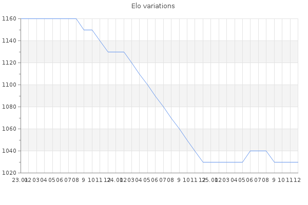 Elo no rounded:1034.6 Rd ( Small rd indicates a reliable elo ) : 94 Elo max :1570 Elo max this year :1570 Moves played :961 Country:Germany