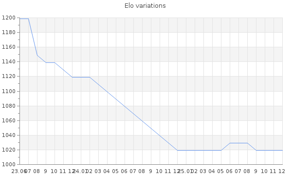 Elo no rounded:1020.3 Rd ( Small rd indicates a reliable elo ) : 307 Elo max :0 Elo max this year :0 Moves played :4 Country:Egypt