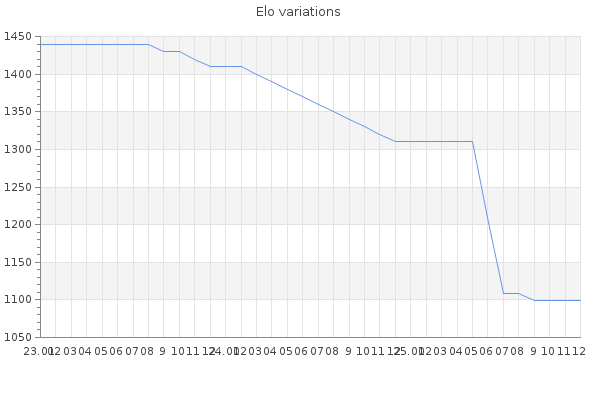 Elo no rounded:1097.2 Rd ( Small rd indicates a reliable elo ) : 235 Fast Elo :1579 Fast Rd : 192 Elo max :1890 Elo max this year :1890 Moves played :11258 Country:United States of America