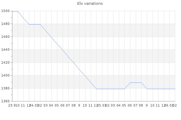Elo no rounded:1379 Rd ( Small rd indicates a reliable elo ) : 350 Elo max :0 Elo max this year :0 Moves played :3 Country:other Country