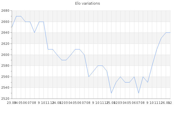 Elo no rounded:2639.5 Rd ( Small rd indicates a reliable elo ) : 80 Fast Elo :1769 Fast Rd : 261 Elo max :2780 Elo max this year :2780 Moves played :43736 Country:Brazil