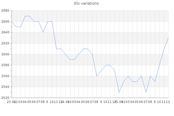 Elo no rounded:2630 Rd ( Small rd indicates a reliable elo ) : 82 Fast Elo :1769 Fast Rd : 261 Elo max :2780 Elo max this year :2780 Moves played :43623 Country:Brazil
