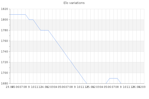 Elo no rounded:1675.8 Rd ( Small rd indicates a reliable elo ) : 112 Elo max :2030 Elo max this year :2030 Moves played :11 Country:Brazil