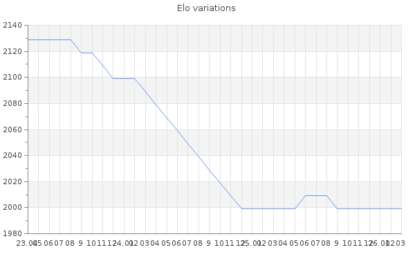 Elo no rounded:1994.6 Rd ( Small rd indicates a reliable elo ) : 170 Elo max :2860 Elo max this year :2860 Moves played :493 Country:Andorra