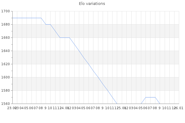 Elo no rounded:1560.7 Rd ( Small rd indicates a reliable elo ) : 135 Fast Elo :1829 Fast Rd : 256 Elo max :1940 Elo max this year :1940 Moves played :499 Country:Spain