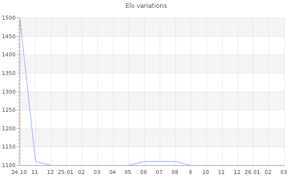 Elo no rounded:1102.7 Rd ( Small rd indicates a reliable elo ) : 139 Elo max :1140 Elo max this year :1140 Moves played :169 Country:Estonia