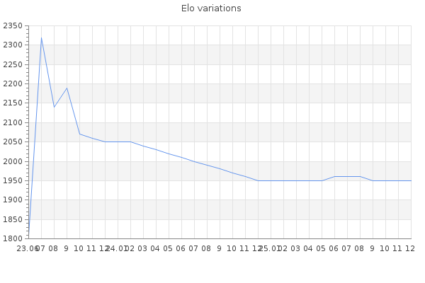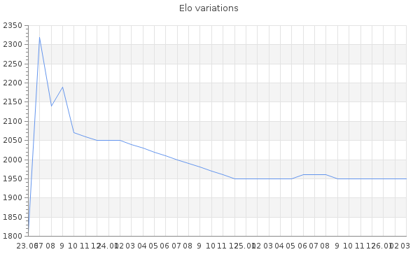 Elo no rounded:1954.3 Rd ( Small rd indicates a reliable elo ) : 123 Elo max :2190 Elo max this year :2190 Moves played :313 Country:Ireland