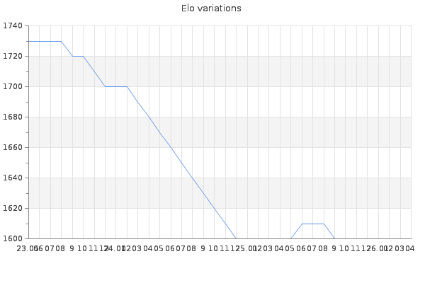 Elo no rounded:1595.6 Rd ( Small rd indicates a reliable elo ) : 92 Elo max :1940 Elo max this year :1940 Moves played :3626 Country:United States of America