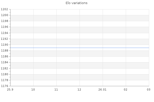 Elo no rounded:1189 Rd ( Small rd indicates a reliable elo ) : 350 Elo max :0 Elo max this year :0 Moves played :1 Country:United Kingdom