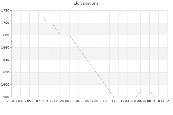 Elo no rounded:1578.1 Rd ( Small rd indicates a reliable elo ) : 84 Elo max :2120 Elo max this year :2120 Moves played :964 Country:Bulgaria